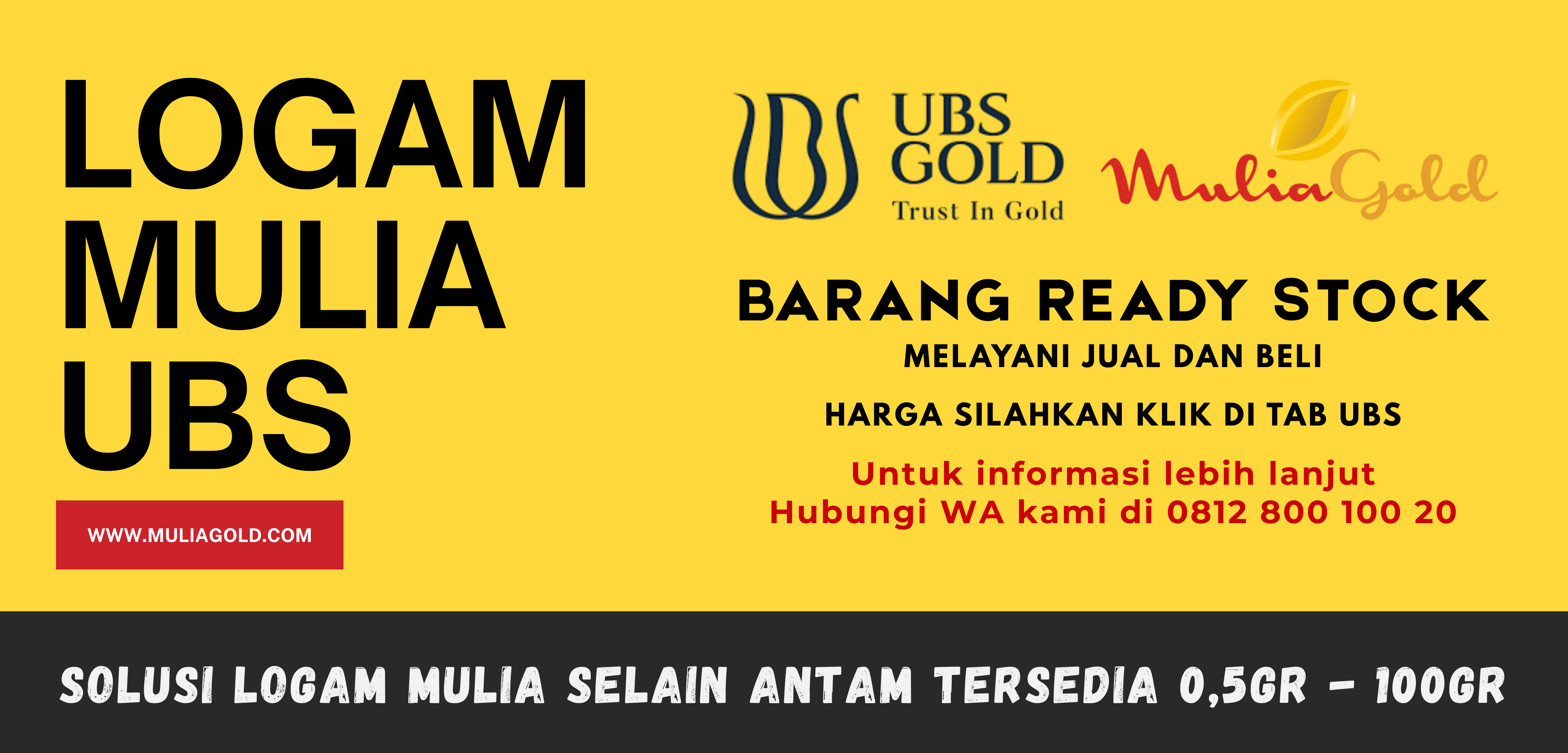 Harga dan ketersediaan barang dapat dilihat pada website kami www.muliagold.com , namun perlu diperhatikan juga bahwa harga dapat berubah sewaktu-waktu mengikuti perkembangan harga emas. Kami akan selalu mengupdate harga di website kami jika ada perubahan harga (mohon diperhatikan tanggal dan jam update nya). Jika ada perbedaan harga baik itu salah ketik ataupun perubahaan harga, harga yang berlaku adalah harga yang ada di panel harga di toko Mulia Gold.